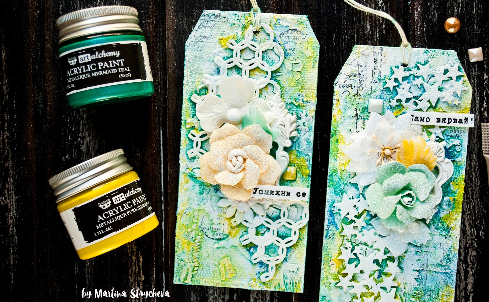 My tags today are inspired by her style in mixed media.