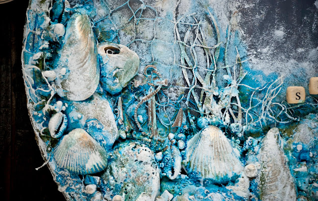 I created an altered embroidery hoop inspired by all blue and green colors of the sea.