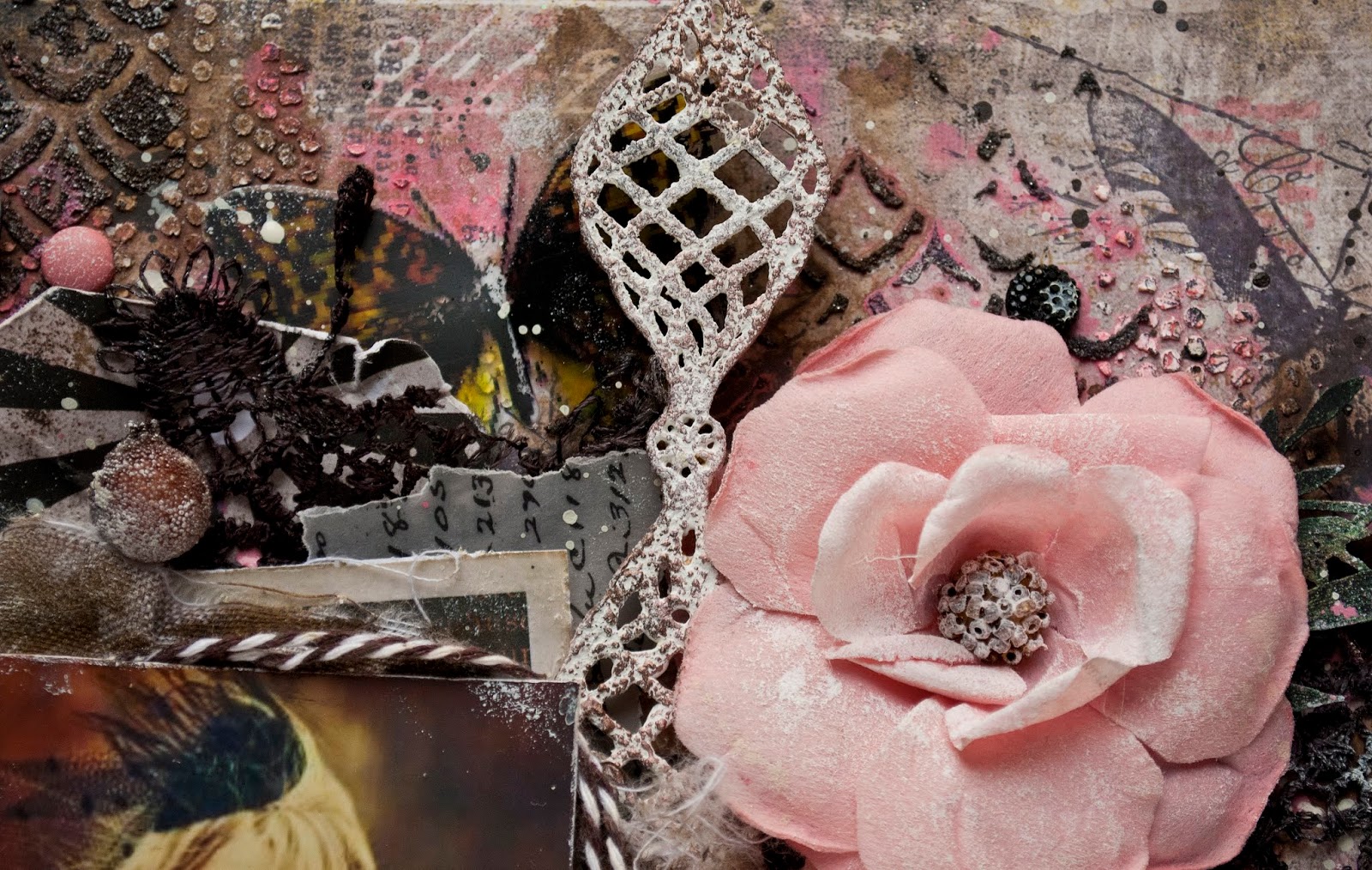 Today I`m sharing with you my layout for Dusty Attic. I used 7 Dots Studio paper as my base. The color palette is brown, soft pink and a touch of green, who would`ve guess that it can look so good together?